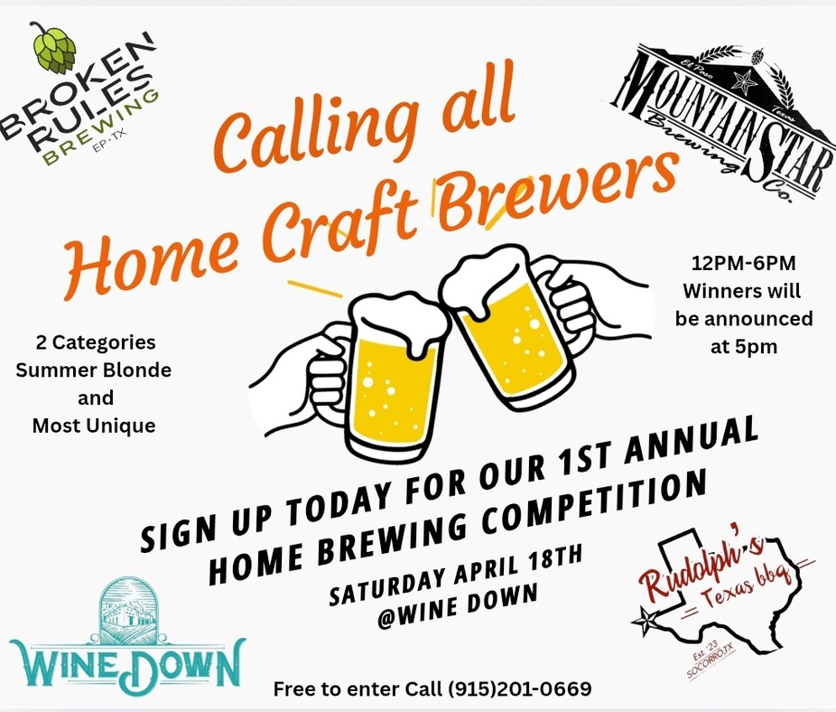 Join us April 18th for a Home Brew Contest at Wine Down — an afternoon full of BBQ, great beer, music, and good laughs. Bring your best batch and compete for glory while we enjoy a fun, relaxed day with fellow beer lovers.